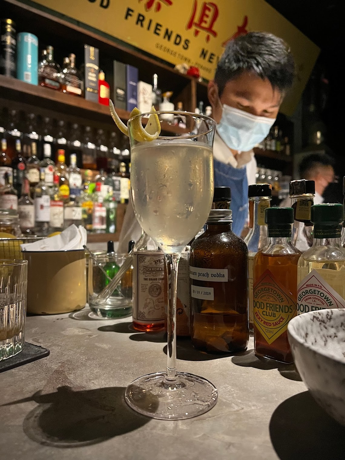 A neighbourhood cocktail bar located in Hin Bus Depot, Georgetown.