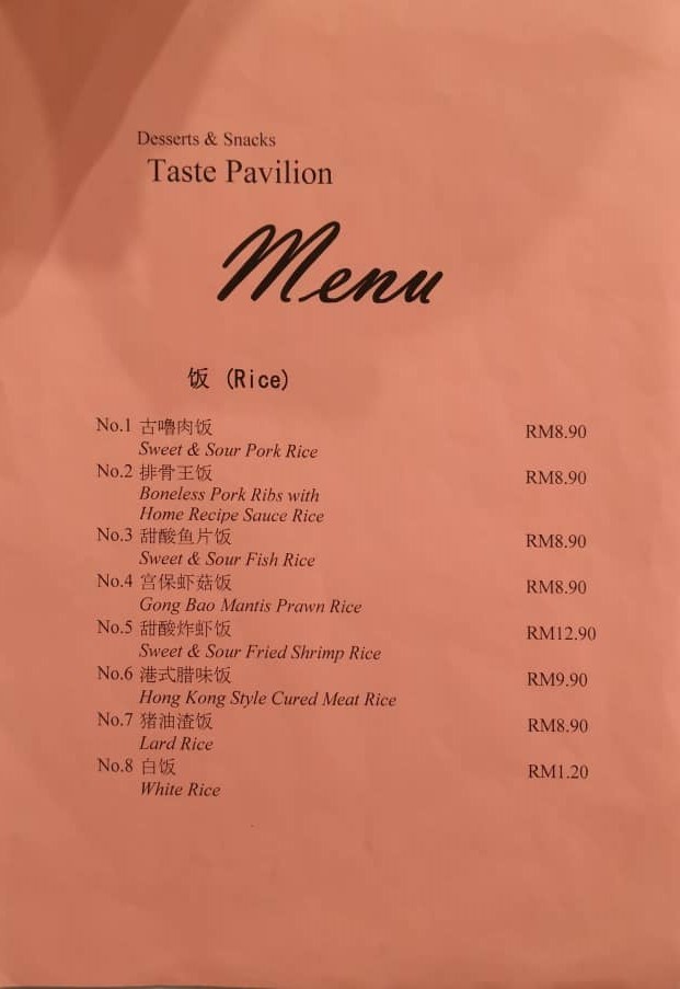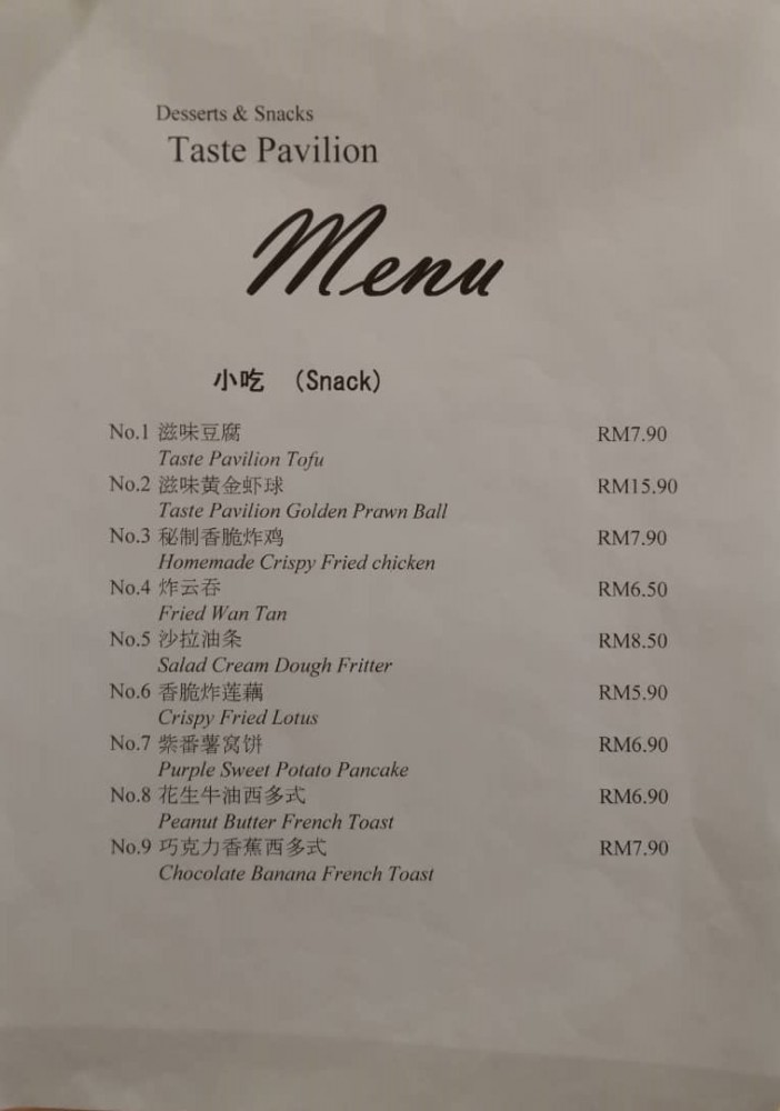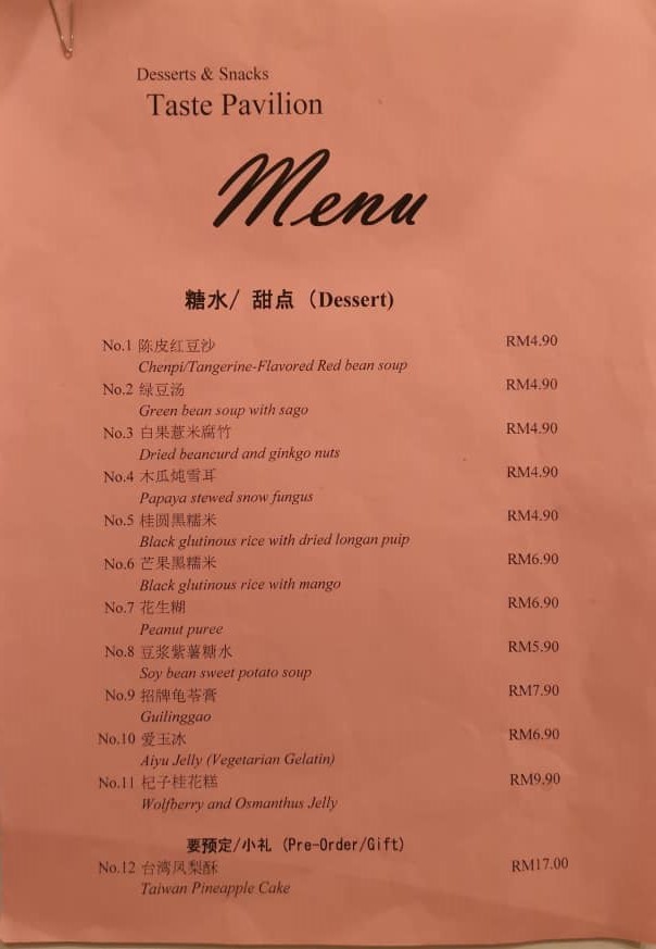 Taste Pavilion 滋味屋 serve traditional Chinese desserts, Western style desserts, savory snacks and also set rice. All foods in the menu are freshly prepare on daily basis.